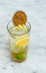 Gin, honey, cucumber& Wheel , lemonJuice, and tonic water