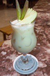 Vodka, Lemon juice, Strawberry purée, mint Leaves and apple juice