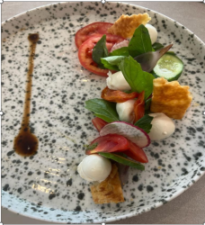 Mini Buffalo Mozzarella, Sweet Tomatoes, Basil pesto and balsamic