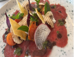 Raw Thinly Sliced Angus Beef Drizzled with Lemon, Mushroom, Rocket Leaves & Parmesan