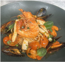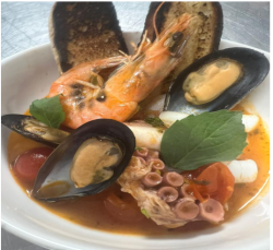 Livorno’s style with various red sea fish, shellfish, shrimp, fresh tomatoes and fresh herbs
