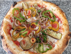 Tomato Sauce, Mozzarella Cheese, Zucchini, Bell Pepper, Eggplant And Extra Virgin Olive Oil