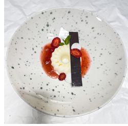 Traditional Italian cream pudding cooked with white chocolate, and berries sauce