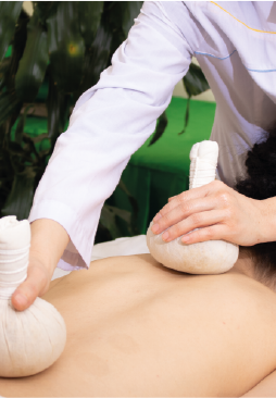 The 2 key ingredients in this massage are Aloe Vera Oil and cold herbal full body mask, both are applied on the body which help reduce the pain caused by sunburn and aid in the healing process.